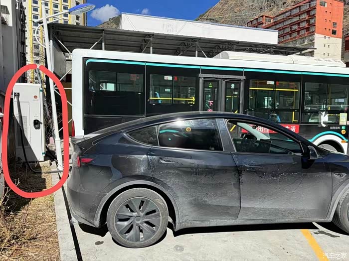 整个九龙县就只有一台充电桩 2个枪头。位于公交站停车场院内,到达时院子门是关闭状态,附近折返几圈之后,决定让老婆推开院门进去查看,之后有位小姐姐看我车像是要进来,主动打开院门。