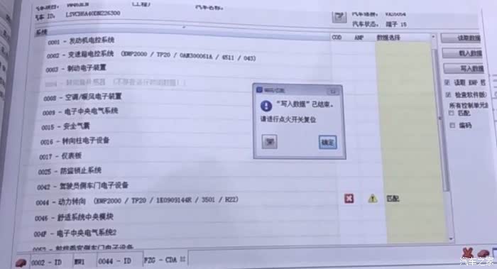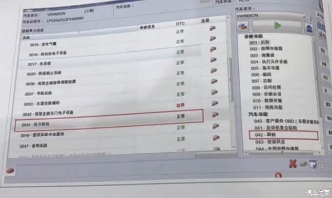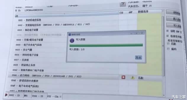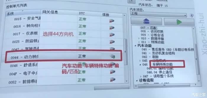 选择44转向机,然后右侧功能栏里46,店里倒三角形,出现两个功能,点击编码,匹配这一项