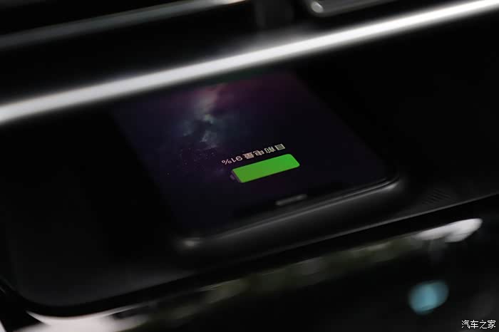 下面的储物槽里面支持手机无线充电,充电效率也挺快的,我朋友把手机放上去,没过一会就充满了。