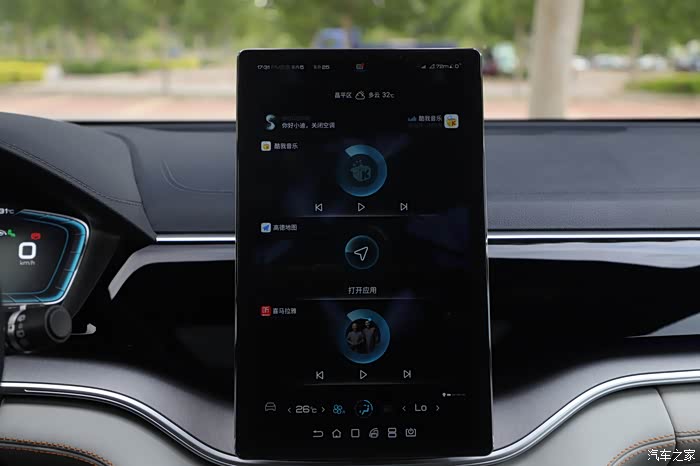 中间的这块屏幕有12.8英寸,就像一块超大的平板电脑,里面基本涵盖了目前市面上所有多媒体功能,而且还支持OTA升级,最牛的是它不仅支持触摸,还可以旋转,方便观看,日常驾驶中,通过语音就能控制这套车机系统,播放音乐导航啊什么的都可以,这一点设计非常的人性化。