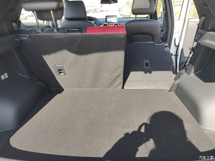 后排的乘坐空间3人乘坐,并无明显压力,风光500的车宽已经超过了1.8米,这个宽度在这个级别中还是少见,所以整车5人出行并无小型SUV的局促感,后排的地板非常平整,放脚的位置很舒服。