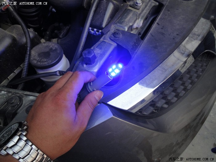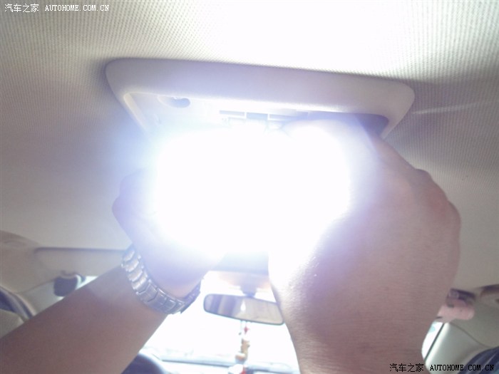 更换门灯和脚灯的时候角度不是很好,没有照到PP,现在看看效果(后门没换,自己感觉好点,红蓝搭配,呵呵)