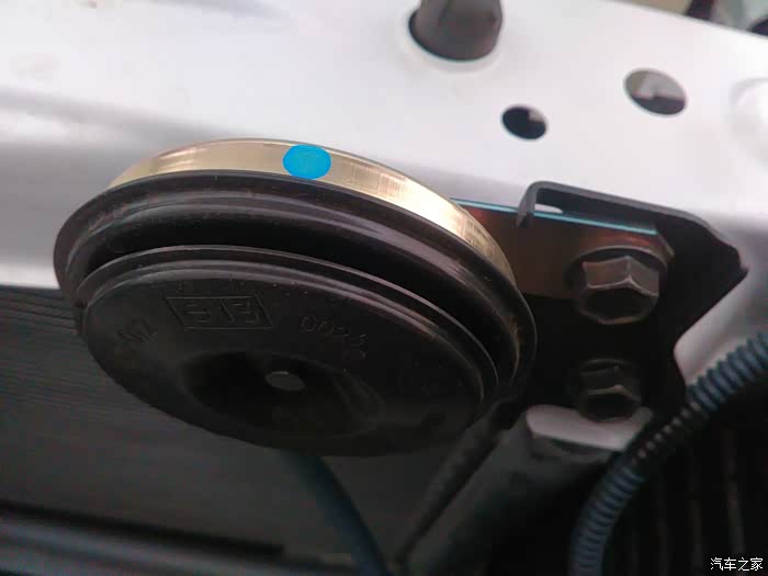 今天3月2日,送完孩子刚回家,快递就来了,喇叭到了,迫不及待的打开快递包裹,喇叭是原厂封的标签,撕开后,喇叭背面印着H,高音喇叭!开工~!其实加装喇叭很简单,只需要一个12的扳手,把机器盖打开,塑料盖拿掉,原厂的喇叭不用卸掉,把最下面的一个螺丝拧开就好,在把原厂喇叭线拔掉,在把一分二线接上,记得一定要先接线后安喇叭,因为插线时发现很紧,如果后接线很难插到位,最后把喇叭拧上就结束了。安装后的喇叭响亮了很多,穿透力强了!上图~~~~!