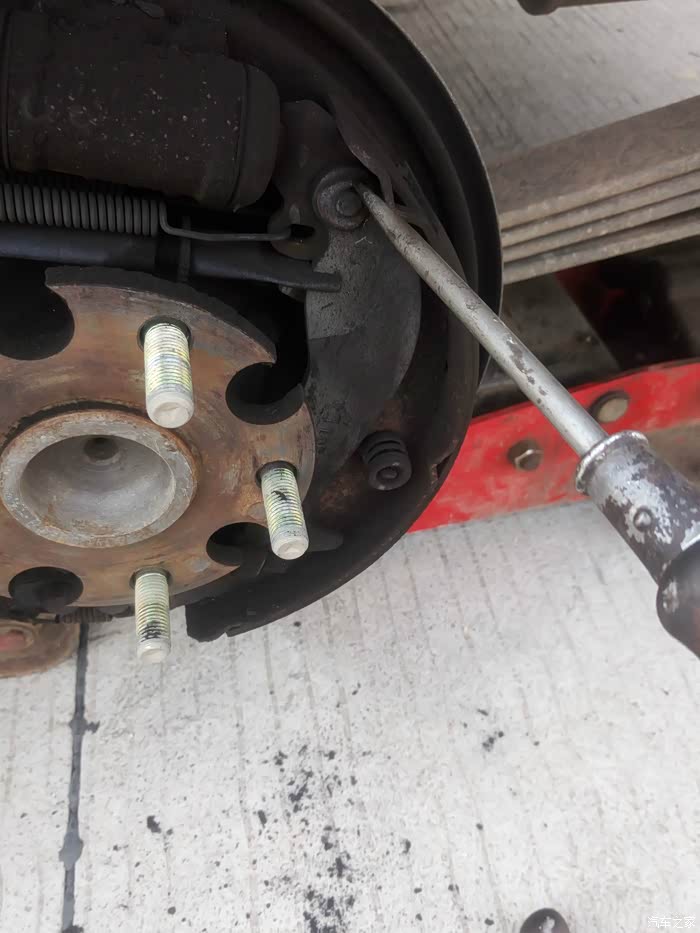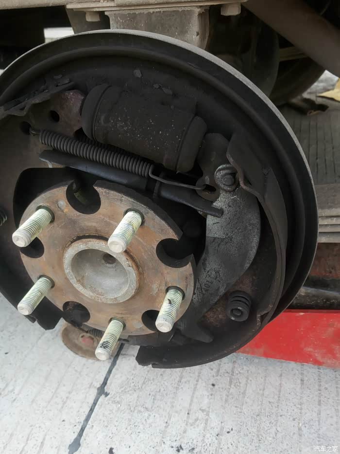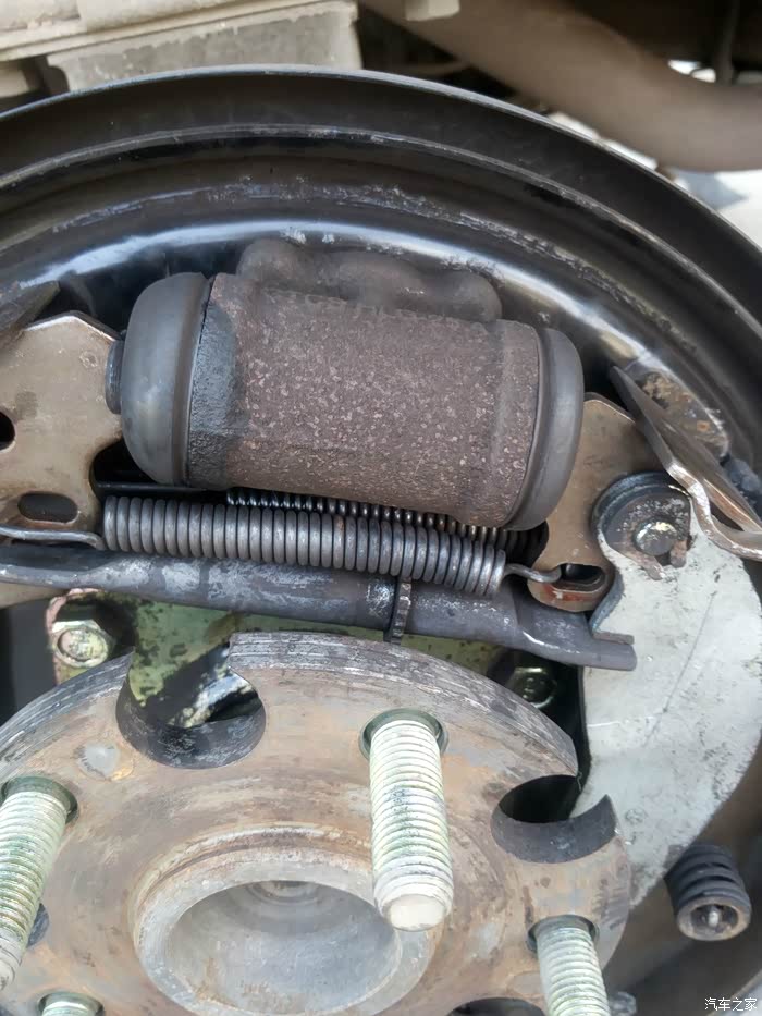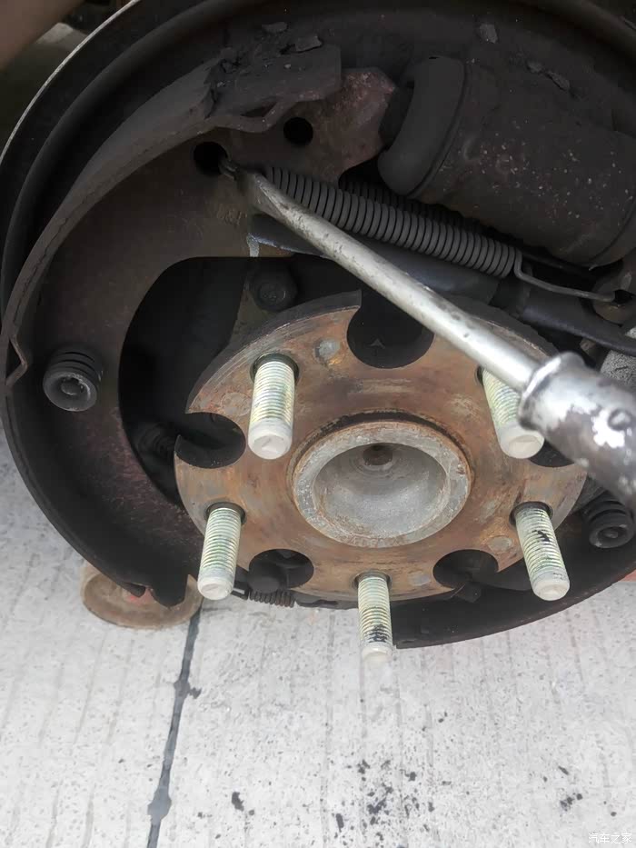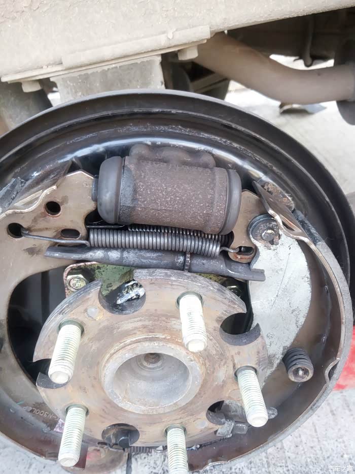 刹车鼓用螺丝顶出来 刹车鼓就能出来 就见到内部了