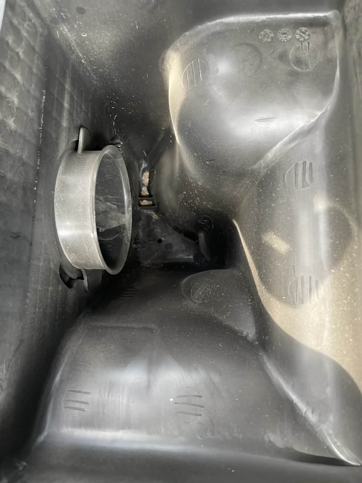 拿出旧空气滤芯,发现底盒非常的脏,全是吸进来的灰尘;由此可见空气滤芯过滤的重要性