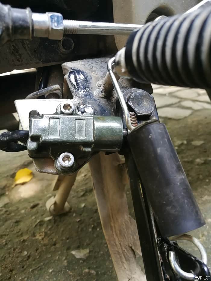 因为很多车友忘记收边撑差点引发摔车的事情很多,我自己也遇到过几次,觉得有一个边撑熄火开关对安全骑行有很大帮助,于是就参考那些有熄火开关的车子给猛鸷加装了一个,实用性挺强的,现在先上图解解馋,后期更新再加上教程。