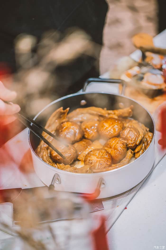 将最容易吸收汤汁的食材堆叠在下方,比如,香菇,萝卜,和鸭脚。