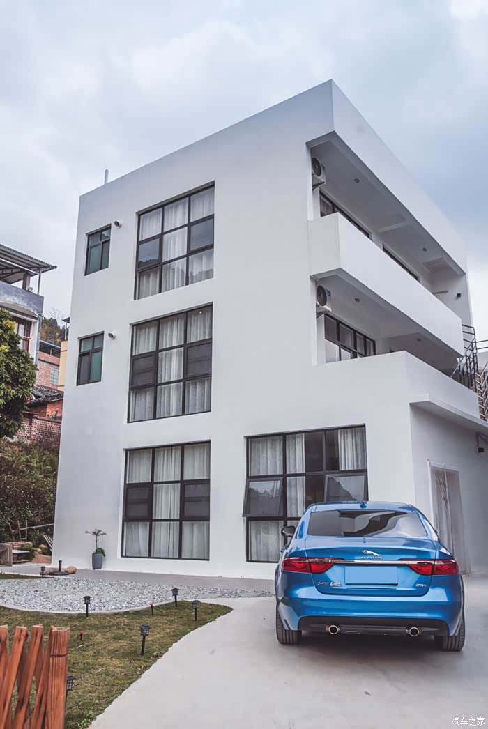 我喜欢把车子停在院子里,豹子的蓝色和房子的白色看起来很配。