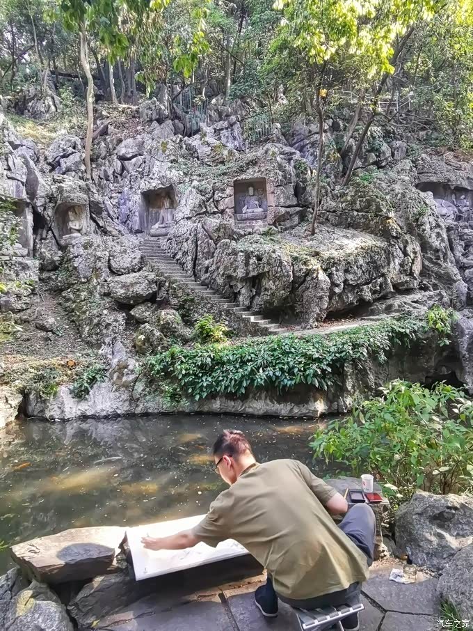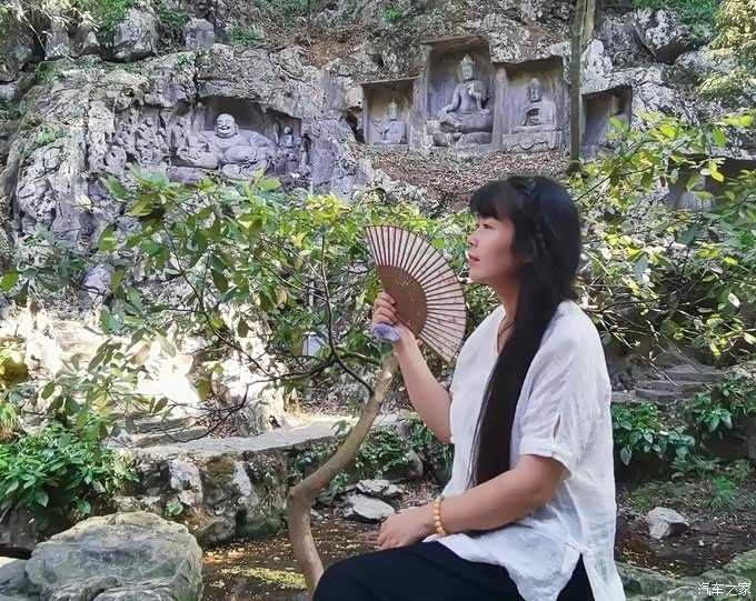 飞来峰下,双手合十,虔诚的祈祷
