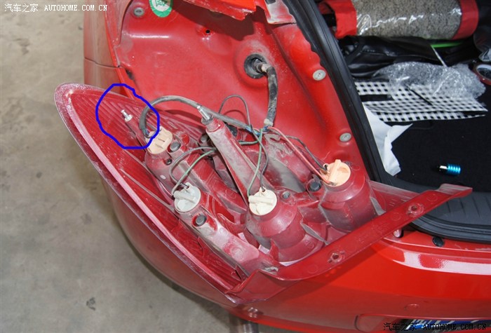 灯线从原本尾箱灯的位置引出,本来想从里面走线的,后来看看还要拆这整块装饰板,懒得动了!就这么着了!
