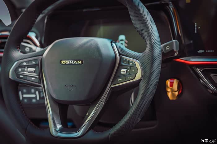 三辐式打孔D型多功能方向盘,还集成了多媒体控制、