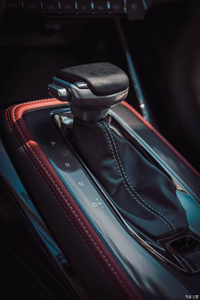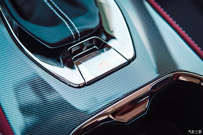电子手刹位置不错用起来很顺手,仿碳纤维的面板提升档次感的同时也为车内增加了运动属性
