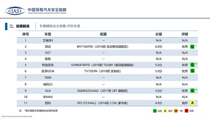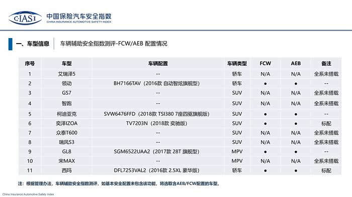 好了,问题来了,我前面说了,带辅助安全的,除了奕泽,另外四款都是另测的高配版,但是,在这个图里,看到了什么 ?是的,没有另外标注辅助安全项的测试车辆配置版本!!!
