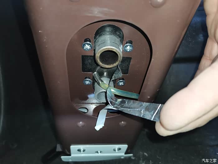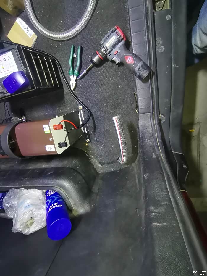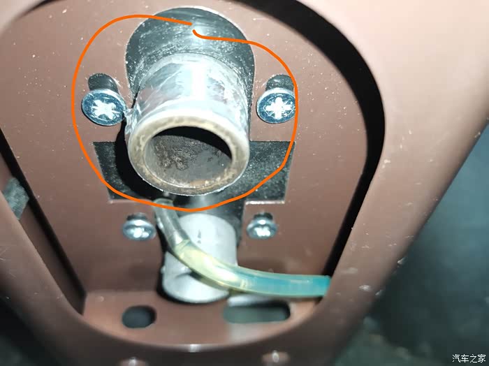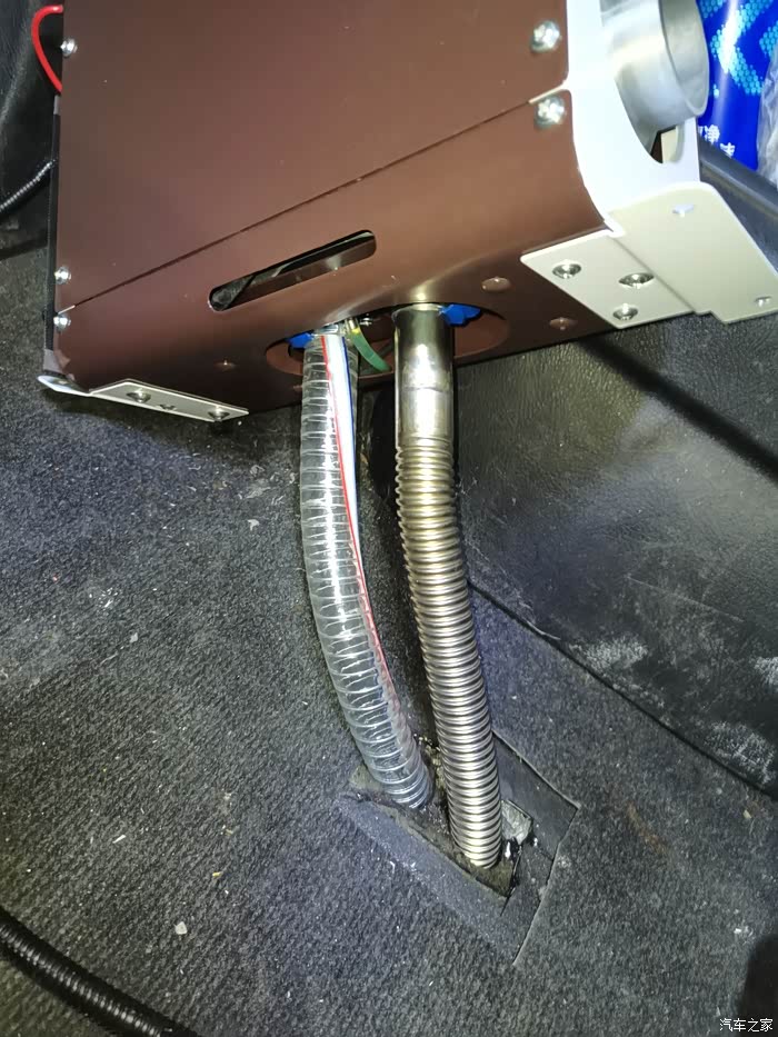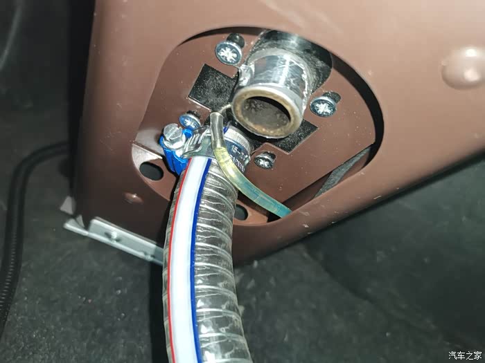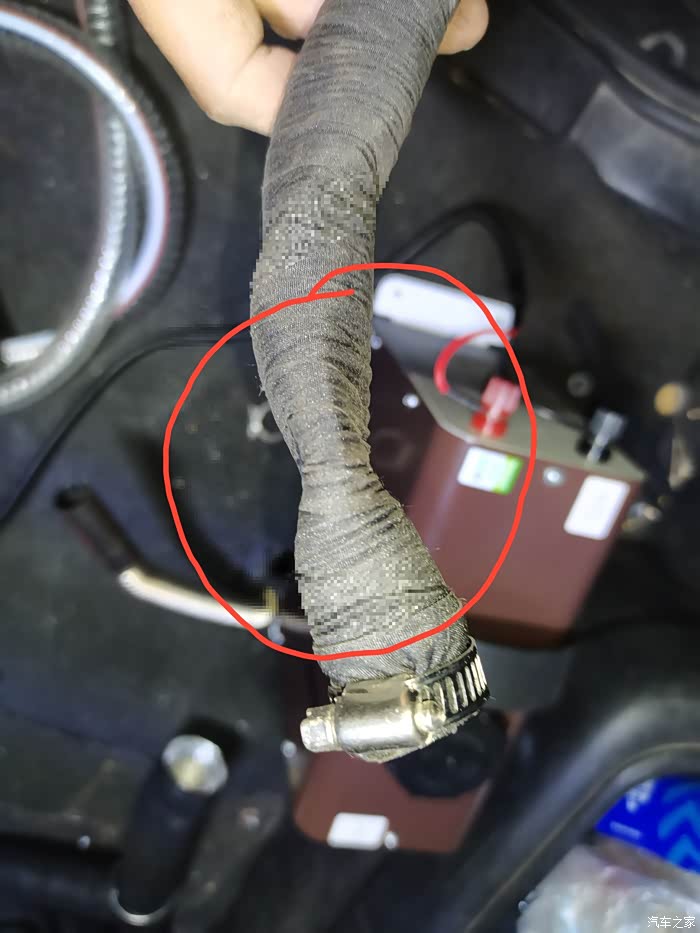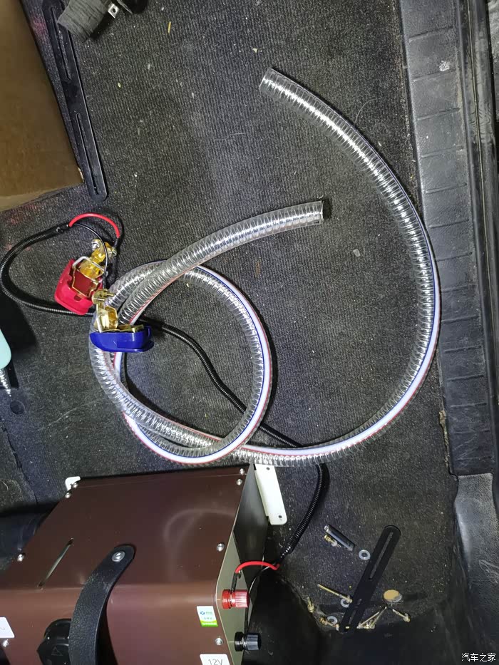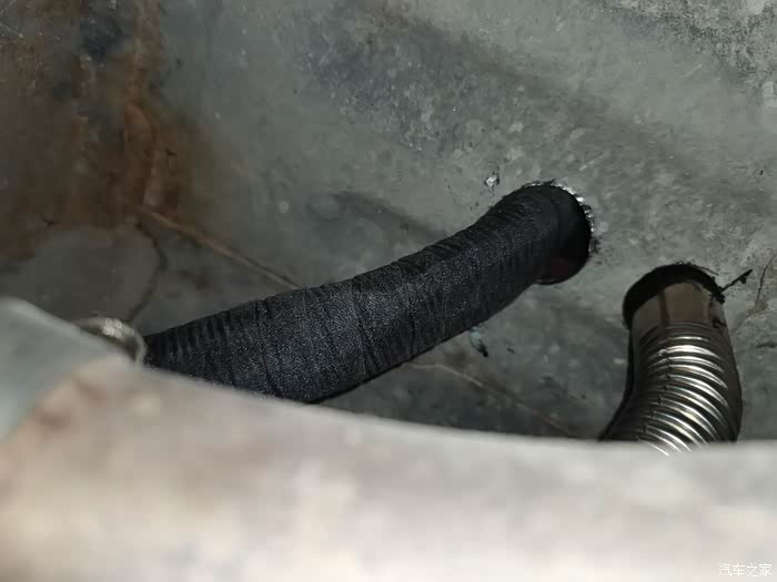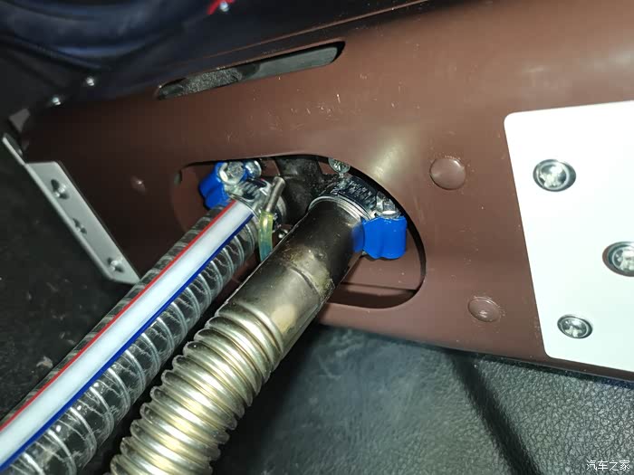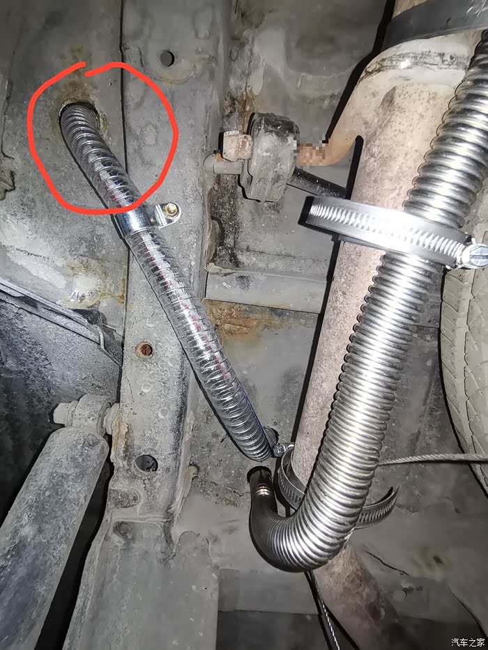 把车底下的PVC软管固定好另一端引入车内(画红圈的位置是引进车内的预留孔)