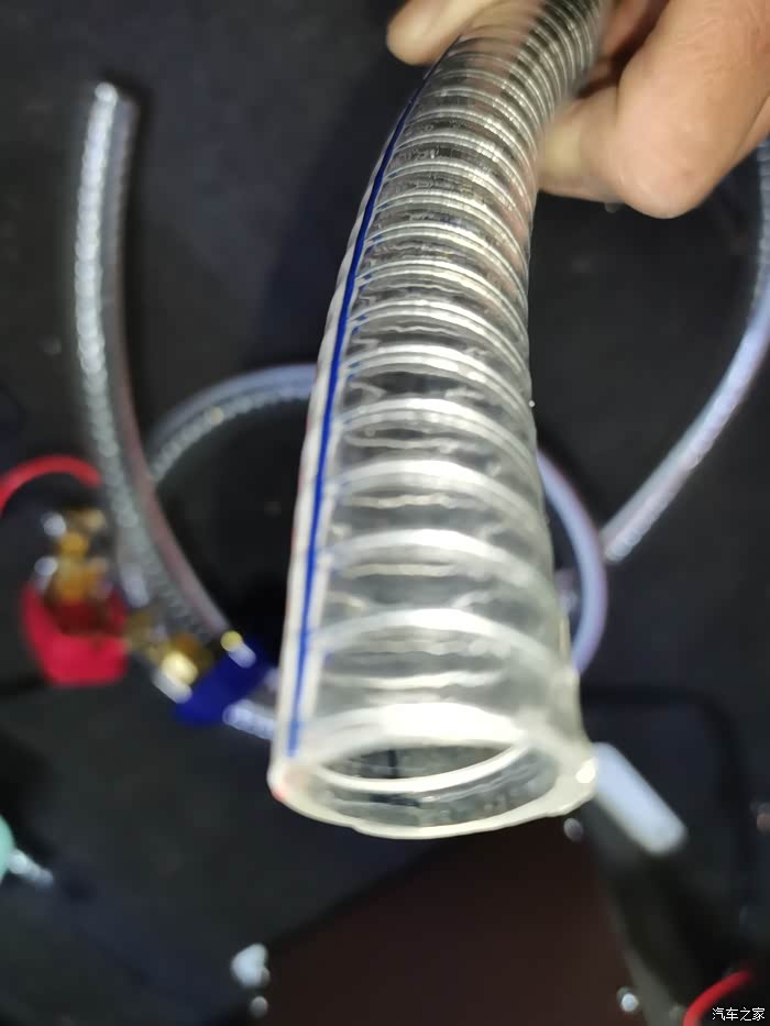 经过和厂家客服的沟通得到进气管的外径为19mm,于是网购透明PCV钢丝塑料软管(内径20mm壁厚2.5mm)代替厂家那根很薄的铝箔管