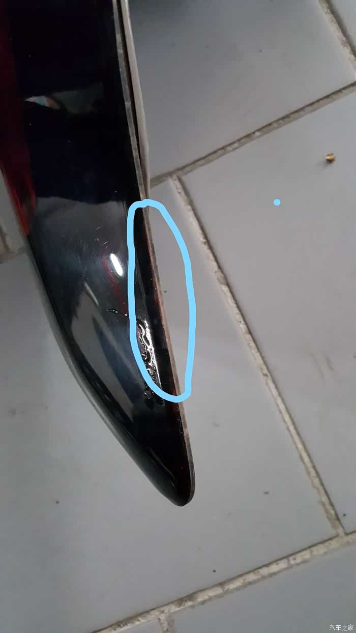 我好像还没在论坛里看到这类情况,所以提示同期提车的车友,检查一下。隐形破损的现象是,标注的地方有红色颗粒类的反光。具体的还是要咨询一下4S店的工作人员。