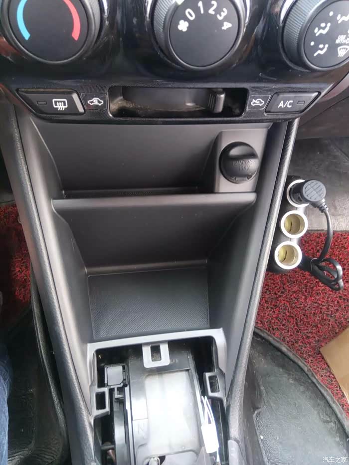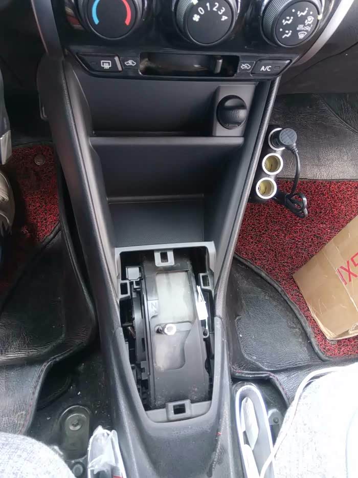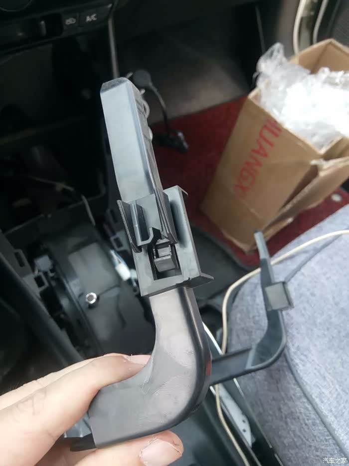 拆掉原储物格后,另外要去掉的档杆,新的储物格比旧的要深,不去掉装不进去