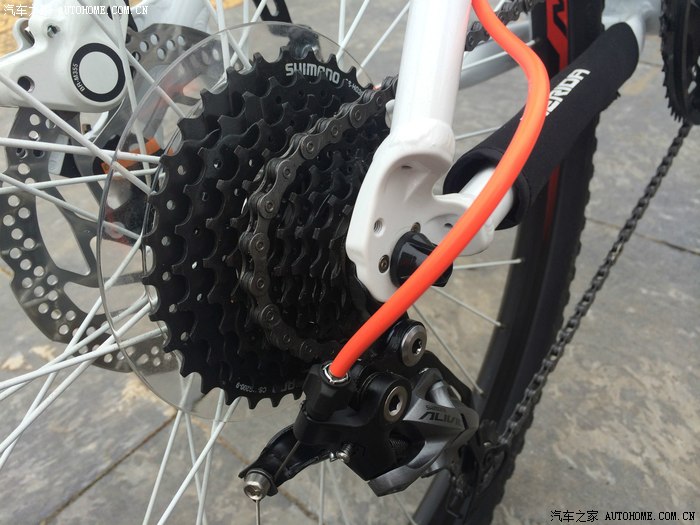 SHIMANO的M4000后9变速和那一丝骚橙。车架上是买车时老板送的防链条剐蹭的保护套
