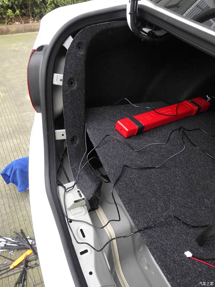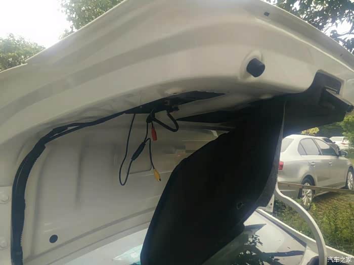 后面是防接梁,刚开始探头的线不知道怎么走到后备箱来,打电话问店家,店家多家说找专业师傅弄,别自己整,没给实质性的帮助。