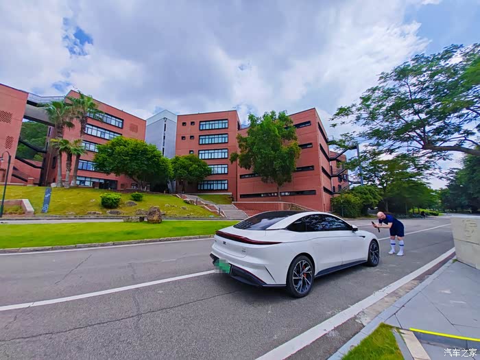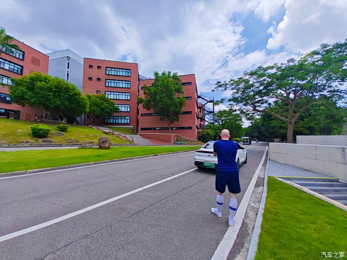 接下来是我把车停在母校的路边进行拍照,有一个外国教授从餐厅里特意出来和我交流这款车。全程英语对话,夸中国的新能源车太棒了。不停的拍照。还给我看了他手机里收集的中国新能源车的照片。