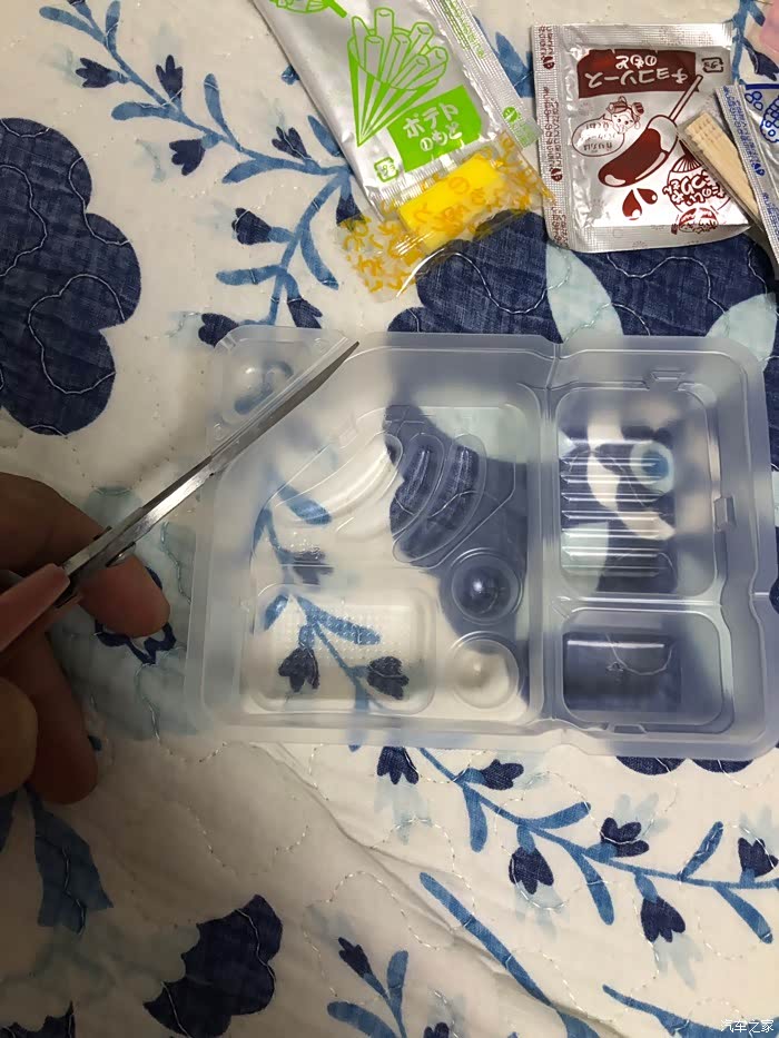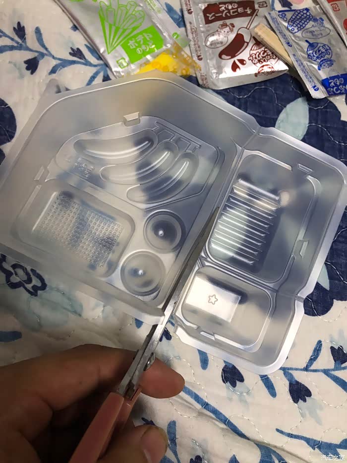 先剪开三角形托盘。盛水计量器具