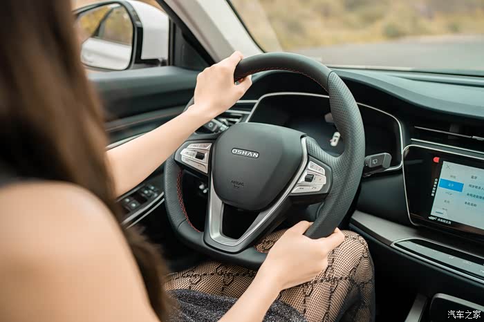 长安欧尚X7配备的平底三辐式方向盘独具特色,很吸引眼球,采用真皮材质。