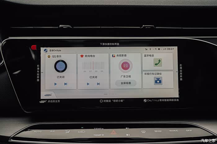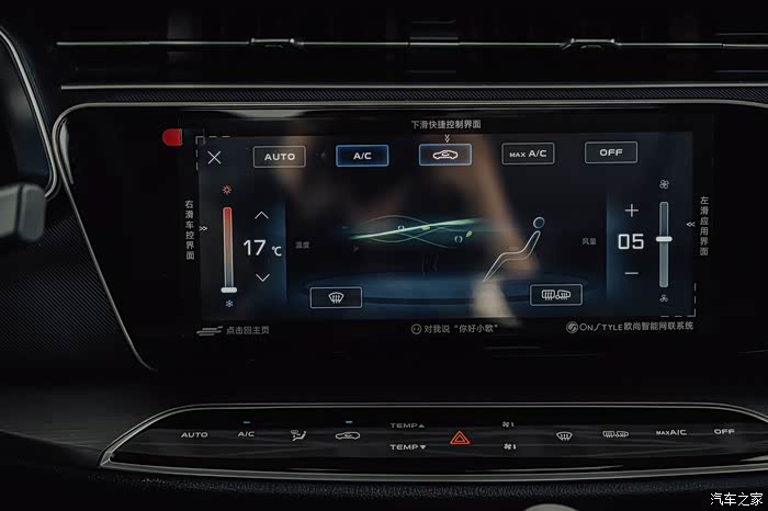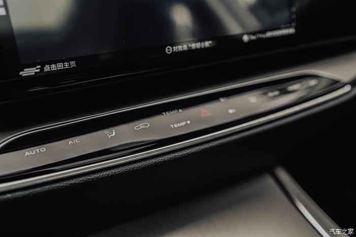 中控台没有保留任何物理按键,空调控制由触控面板来完成。这块触控面板的反应速度还不错,按下去也会有声音反馈。