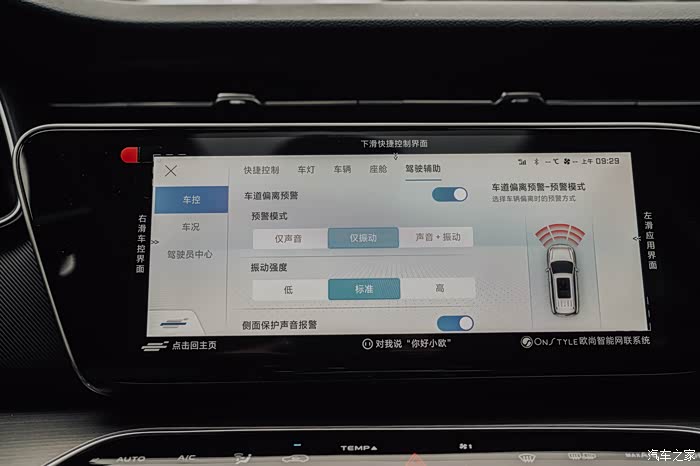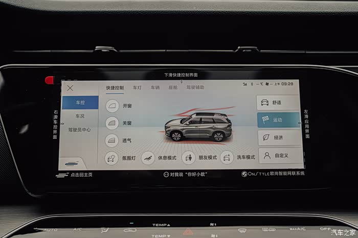 另外长安欧尚X7是支持手势控制的,在仪表盘前比个ok的手势就可以快速的进入或者退出运动模式了。