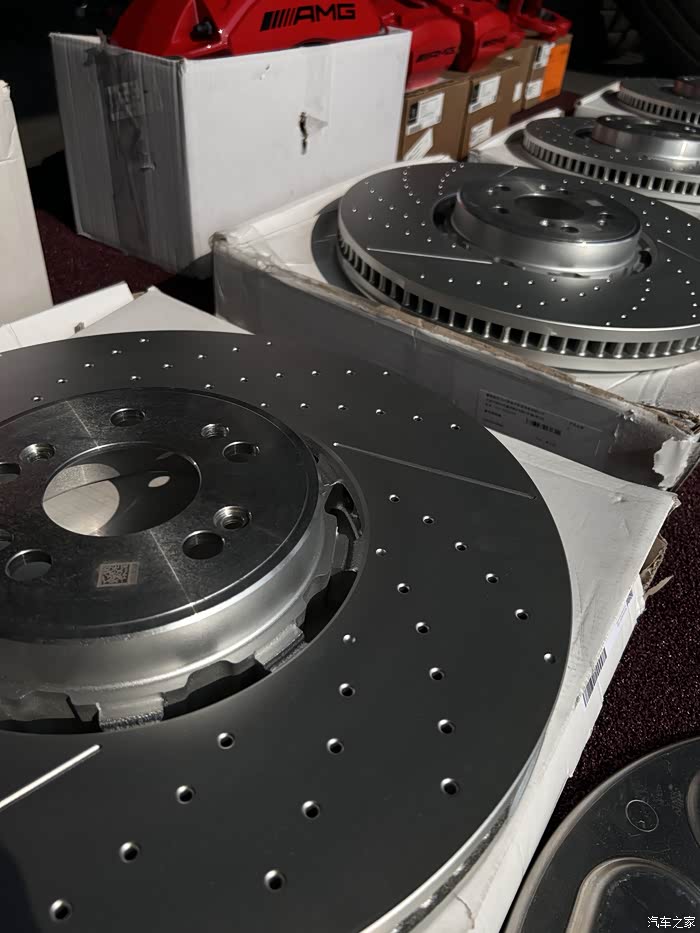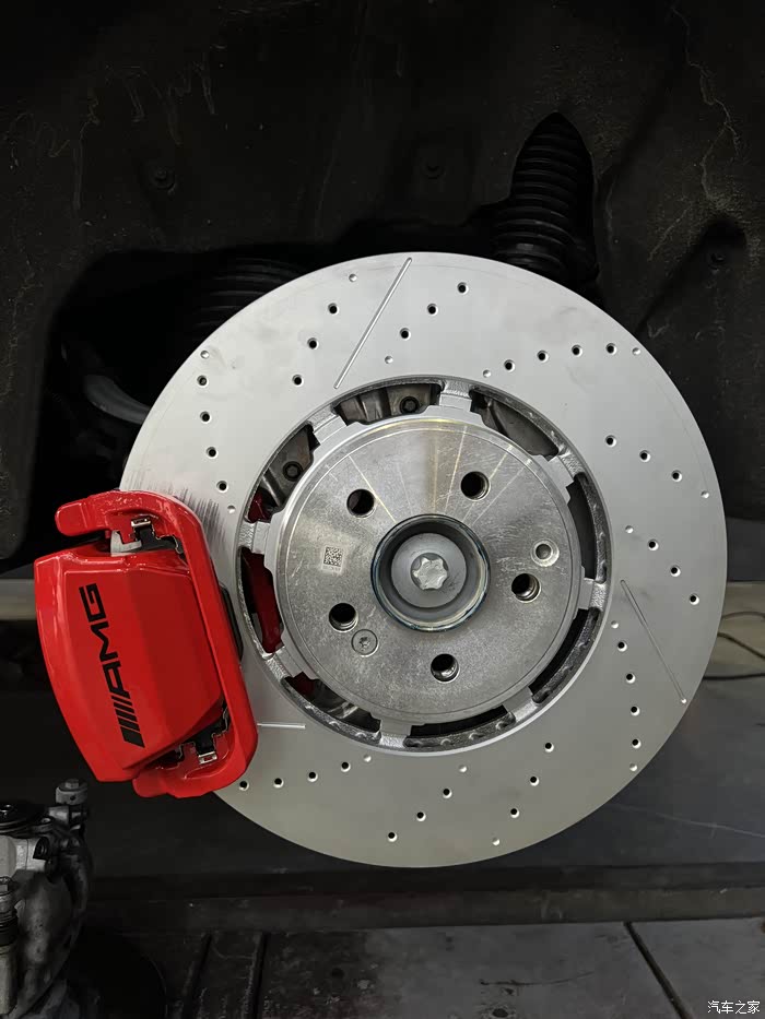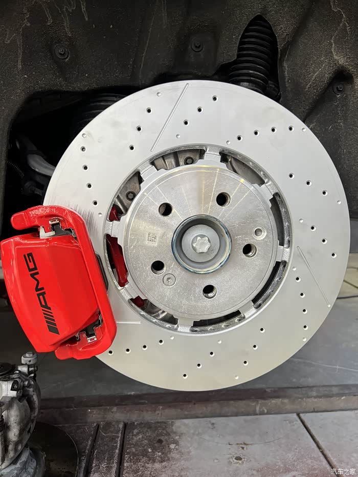 对于M.Benz的车迷来说,AMG必定是他们的圣物,经过AMG改装的成品无一不是拥有动力强横,且操控性、舒适性都能够兼备的。下面所介绍的这套制动系统,便是由AMG出品的大六活塞卡钳及大直径开孔刹车碟,所组成的制动套件。这是奔驰GLE原厂的刹车卡钳,小活塞,看上去没有运动感,没有激情前轮卡钳+刹车盘,前轮卡钳带有6活塞,能够使运动的车轮减速或者停止,多活塞制动卡钳能够更有限的缩短刹车距离,提高紧急情况下的行车安全。