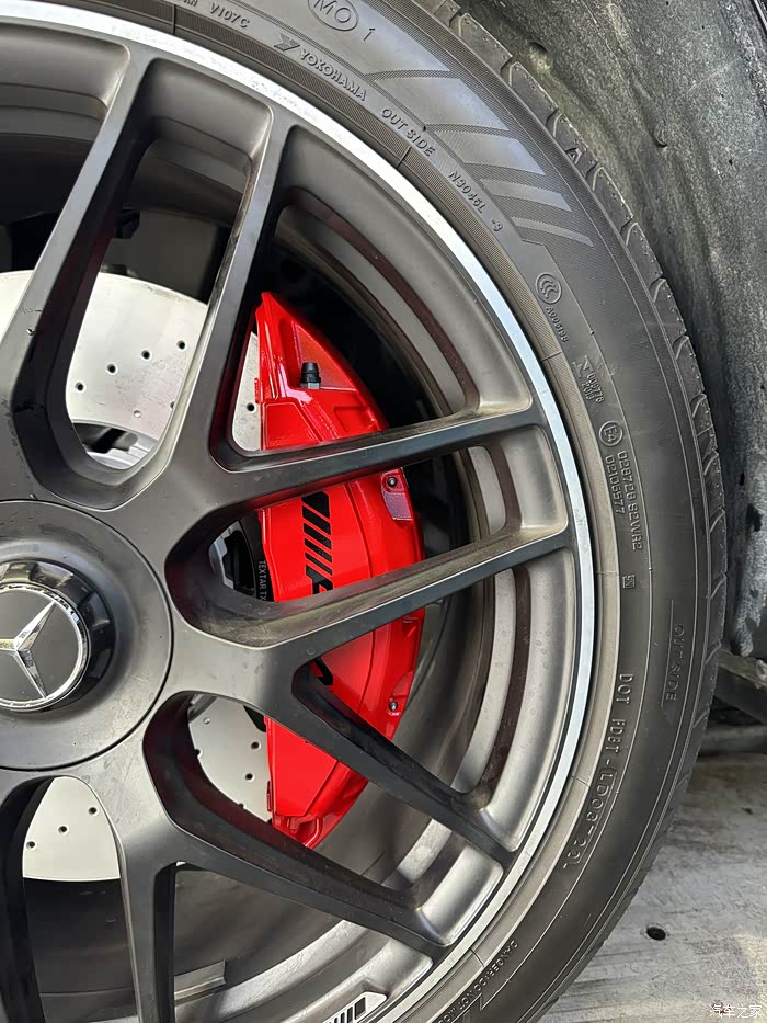 奔驰GLE53后期安装的AMG前六后一刹车卡钳的效果