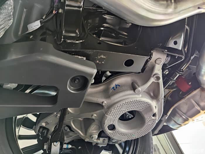 发动机下护板,软性材质,应该没有防护作用,只是提高风阻效率