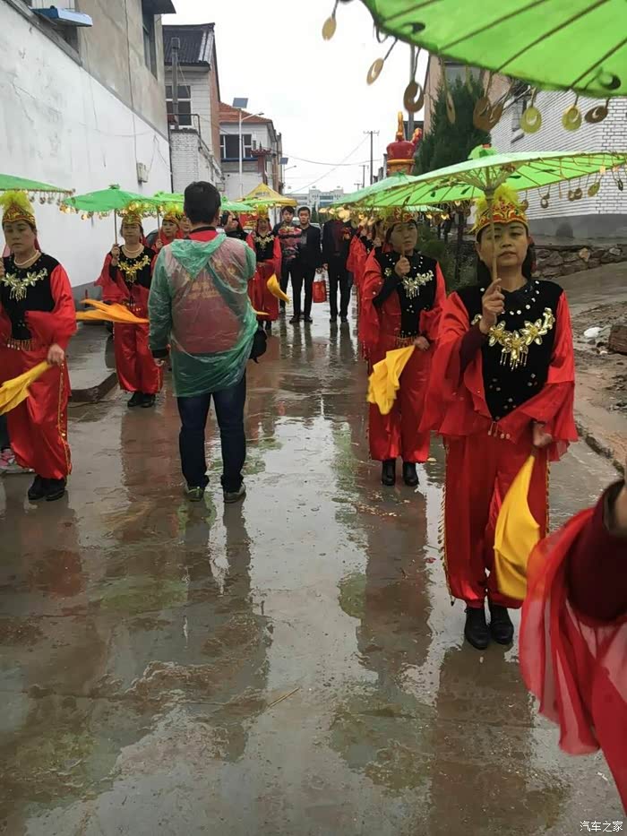 经过一个多小时的等待,终于要出发了。秧歌队的阿姨们这个伞可是派上用场了,哈哈,可怜的摄像大哥