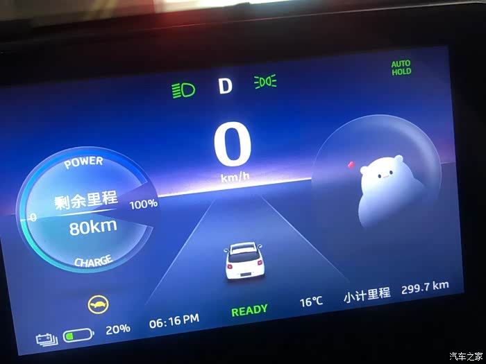 再接着开,共开了299.7km,还剩80km续航,加起来299.7+80=379.7!约等于380!现在开始提示小乌龟了,要充电了!