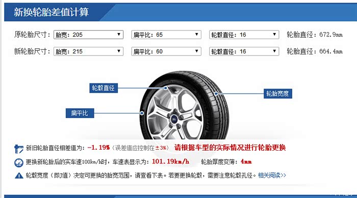 百度,轮胎计算器,把参数都输上去。如果想要换其他尺寸轮胎的朋友,有了这个轮胎计算器就好办多了吧。