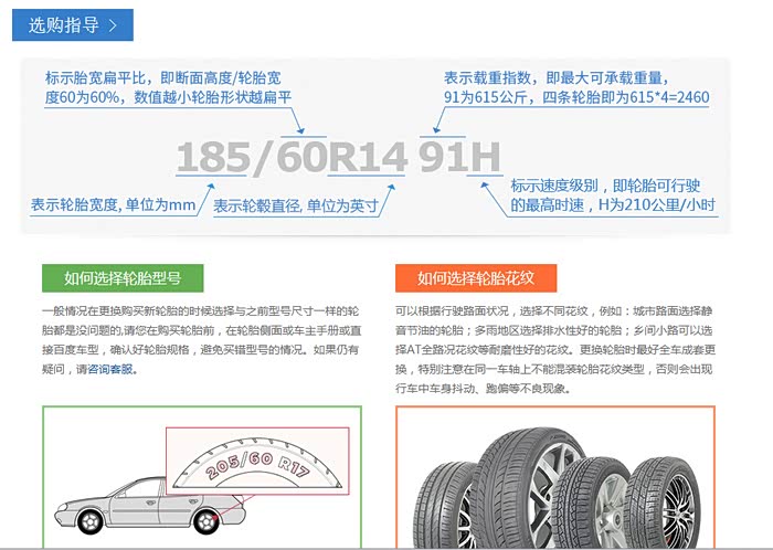 对比一下途虎的网站,人家后面说明了,91 和 H 两个标分别代表的是载重和速度等级。