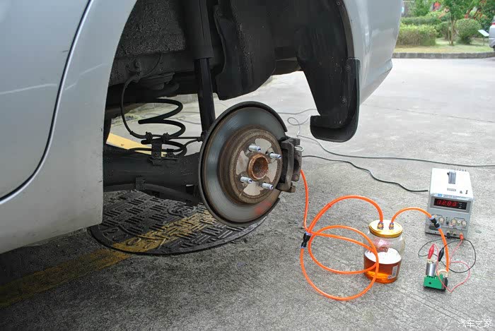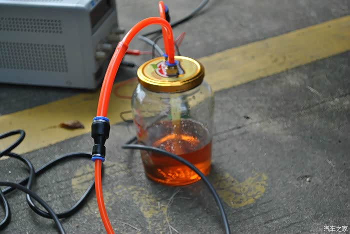 拉来220V电源,找个维修电源调成13V做真空泵的电源。把刹车油罐里的旧油先抽空。再加上新油