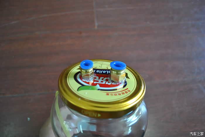 瓶盖上开2个孔,加上6mm快接口和8mm快接口。
