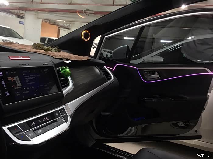 用的是冷光线,四门跟全景天窗都做了。冷光线的好处,不会发热,不用粘胶水和3M胶。安装直接塞进裂缝里,没有瑕疵。