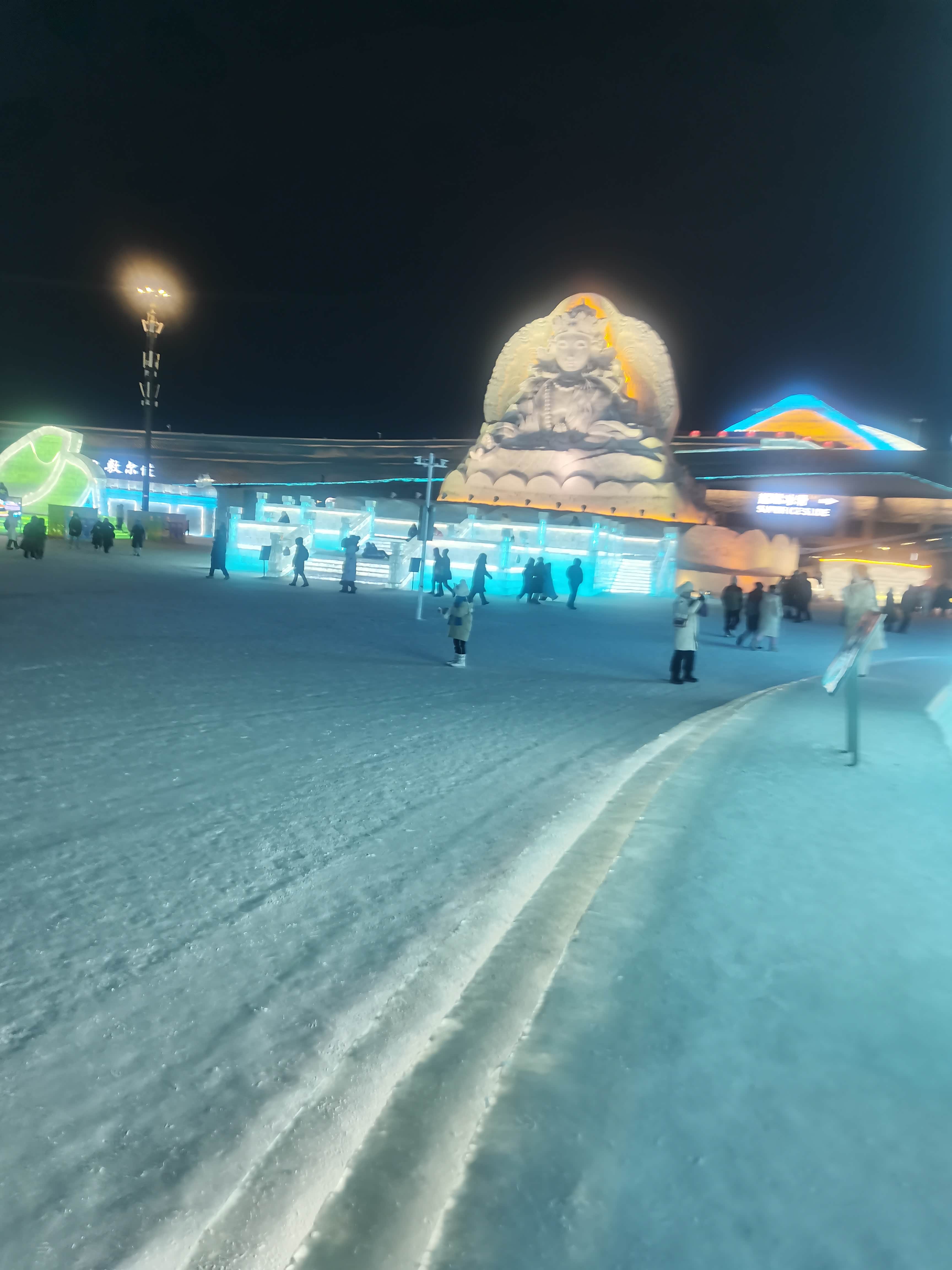 哈尔滨冰雪大世界的角落,一方冰雕地藏菩萨静立其间,成了凛冽寒冬里最澄澈的注脚。整块冰料经匠人精琢,菩萨衣袂褶皱如流水凝驻,垂眸神情悲悯又温和,冰晶折射着暖黄灯光,竟让冰冷材质生出了抚慰人心的温度。
