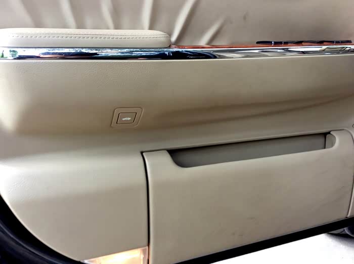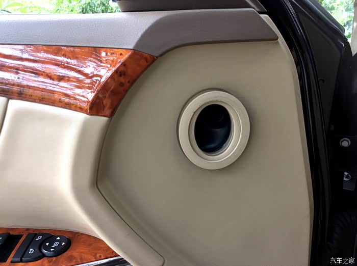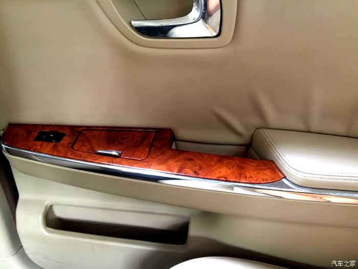 车门很厚重,4个车门板都是真皮包裹的,仿桃木装饰的恰到好处,很符合这辆车的定位。下面的储物盒只能放个长的钱夹,其他的基本也放不下。