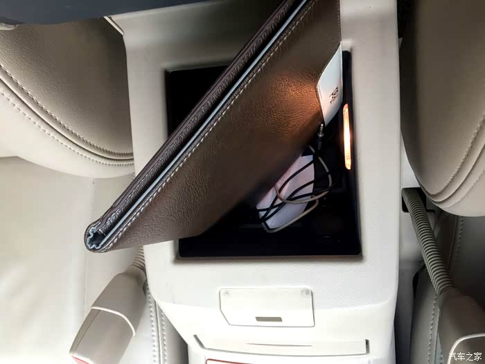 左后门上的烟灰盒,商务车必备的。不过同样很干净。下面的那个储物盒还是很尴尬什么也放不了,放进去了就不好拿出来。或许是考虑到坐后排的都是领导有秘书负责拿东西,不需要放东西吧