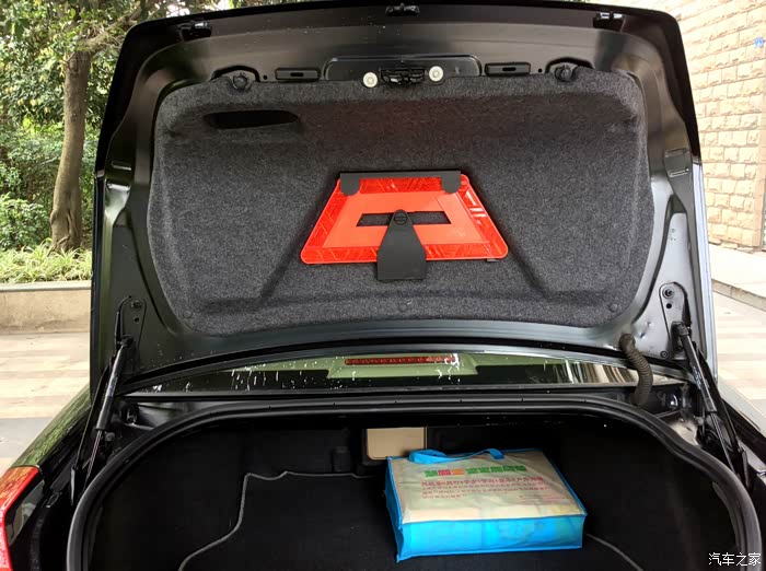 后备箱同样是液压杆的,三角架很新。买的野餐垫出镜了