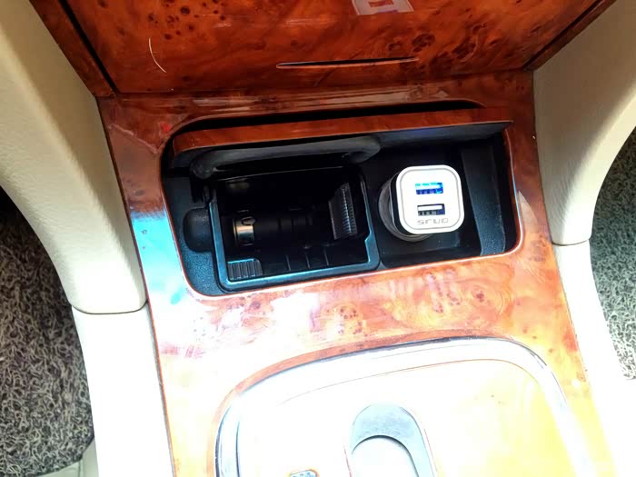 从这可以看出原车主从来没有在这车上抽过烟,烟灰盒很干净点烟器也从来没用过。不过我也不抽烟所以就放这个充电头很合适。