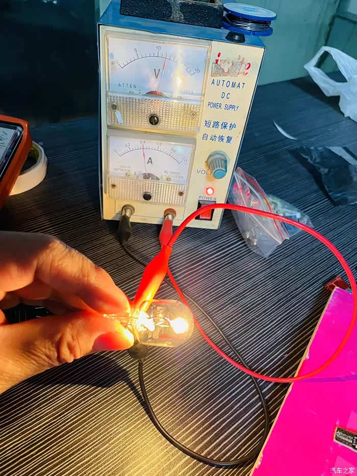 若你也购买了10元左右的T20 LED后,安装上肯定会报障。强迫症患者分析如下:此车前示宽灯使用的是普通T20灯座。经测试,灯座内供电仅使用了T20的行车档,也就是低亮档,卤素灯的低亮档电流在0.4左右。改成普通T20 LED后,其行车低亮档普遍远低于0.4安。奔驰车机检测到低于0.4安后会以为卤素灯泡损坏而报障。但经测购买的T20 LED灯的高亮档电流在0.5左右,所以,经调整管脚后,按正确方向安装上测试肯定正常,可不加电阻。