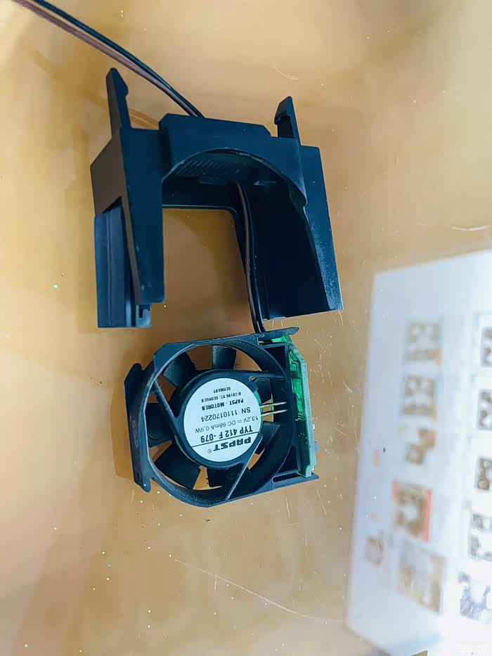 3.DVD机头内散热风扇,此风扇在机头一侧,主要对DVD内热量抽出。可拆出进行更换或注油处理。(我的这个声音正常,未拆开注油)