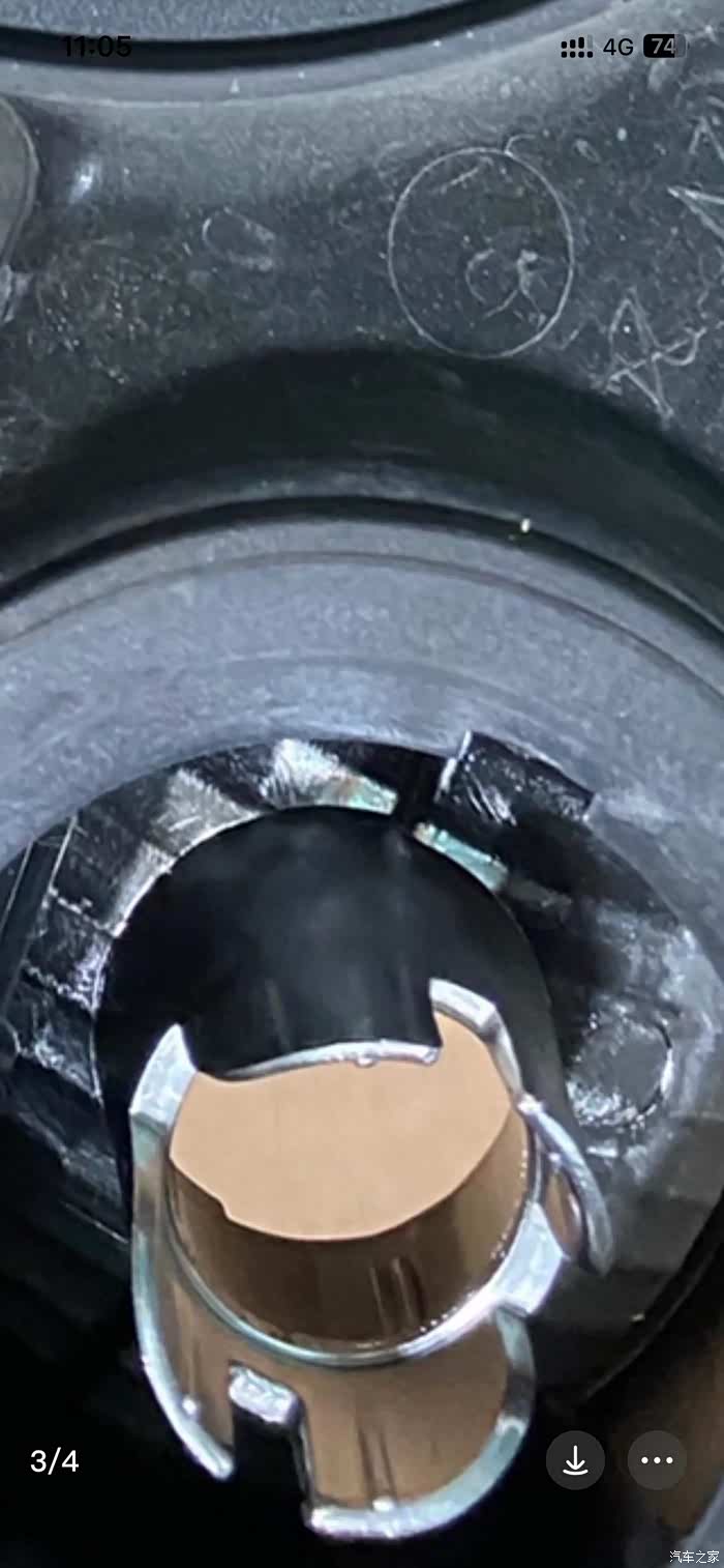 前大灯里的示宽灯卡口如图,拆灯珠需要技巧,用力往后拔即可,空间狭小尽量把旁边的大灯保护罩也拆下。