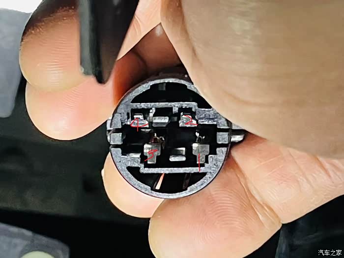 经测量,唯雅诺前示宽灯的灯座定义:1和3脚为地,2是12V供电,4脚为空。