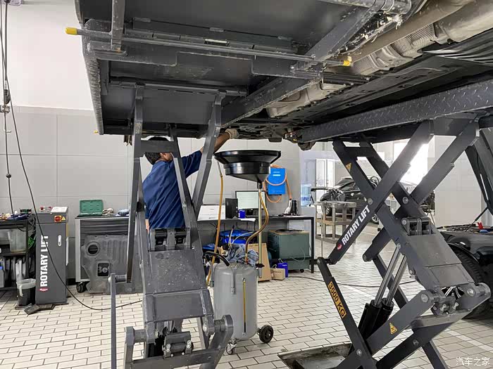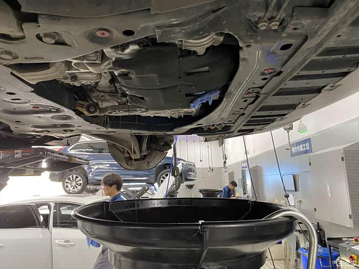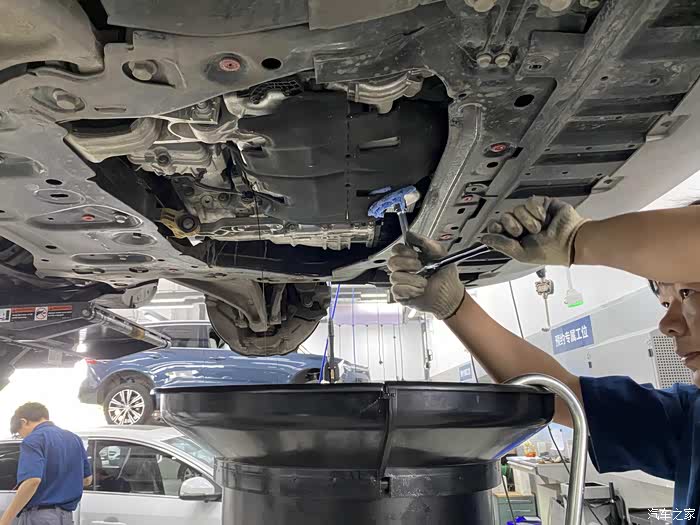 另一个小哥就升级车辆开始做机油机滤的工作
