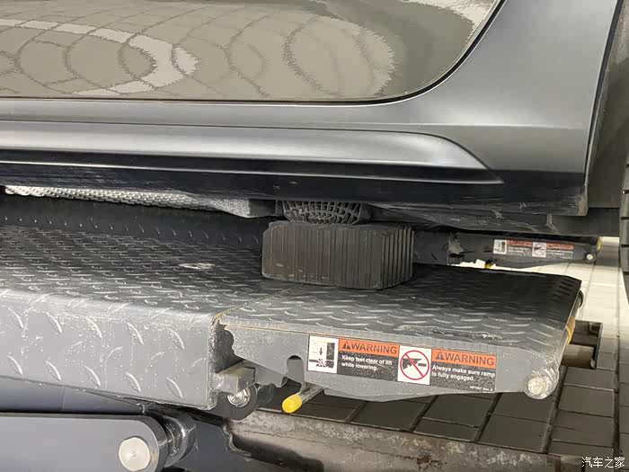 师傅在车子前脸垫上了垫子,准备开始工作