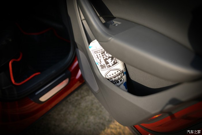 这三张图大家来看看门上的储物空间,还是够用的,大瓶饮料都可以放得下,不过那瓶1.4L的椰汁只可以倒着放了 ↑